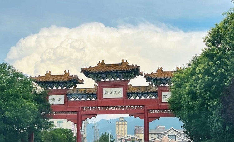 水暖風(fēng)和麗日融,清潭似鏡現(xiàn)魚蹤。飛鳥歡啼鳴山林,獨(dú)龍靈動舞彩虹。錦屏如畫縈汭水,塵世如煙漫香風(fēng)。繁花嬌艷添妍秀,綠草蔥蘢展翠蓬。青山巍聳連云際,白云悠逸繞峰穹。