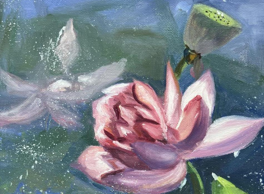 布貼畫《蓮》油畫《蓮》蓮花,似無瑕的美玉,在清幽的池塘中央熠熠。亭亭而立,不蔓不枝綻放。粉白的花瓣,高潔的模樣,宛如廉潔者,心向光明的遠(yuǎn)航。蓮影搖曳,似夢幻的輕紗,微風(fēng)拂過,漾起心湖的漣漪。荷葉田田,如碧綠的盾牌,守護(hù)著蓮的純凈,不容污濁侵襲。淤泥不能沾...