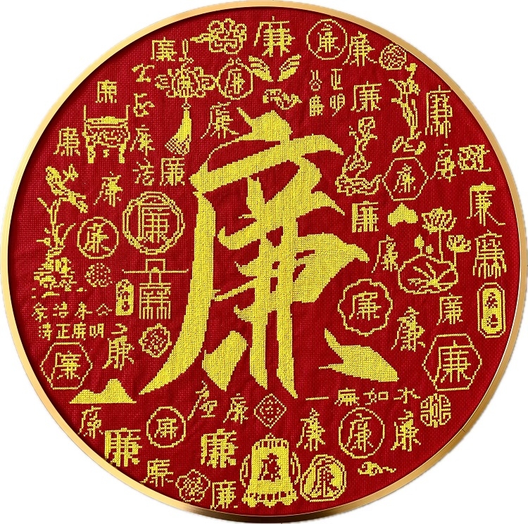 《十字繡:百廉圖》靜坐窗前,針線如靈筆,于丹布繡“廉”。此非單繡,乃心之修行。穿針引線,心沉如湖。每針入布,似立誓。“廉”字千鈞,品其深意,廉潔、廉正、廉明,為德之高,束己之嚴(yán)。繡首“廉”,手微顫,感其重。思廉者,守原則,拒名利,敬由心生。愿如之,持廉于生。針...