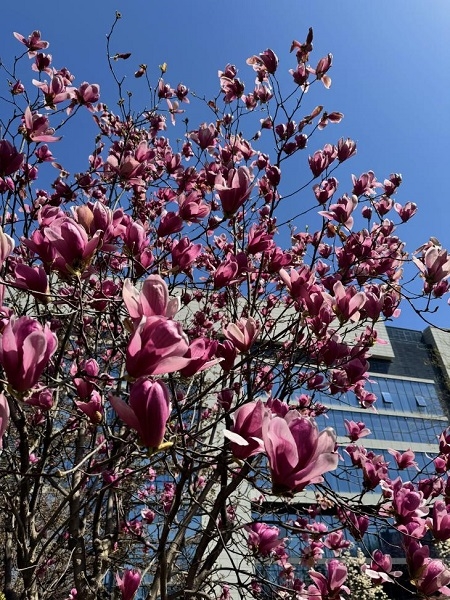 四月的風掠過辦公樓的青瓦,將花朵瓣瓣揉進陽光里,花穗垂成流動的瀑布,層層疊疊的緋瓣間,晃出細碎的光斑,恍若誰把星子串成了簾幕。慢慢的,春天便悄然換了腔調。李子樹下的青磚已鋪上桃色的花毯,枝頭已冒出了米粒大的青果。這是季節的秘語,所有盛放都在為沉甸甸的未來...
